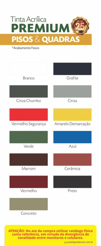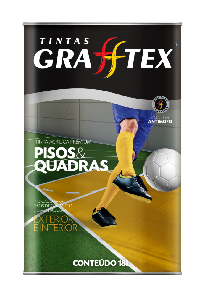GRAFFTEX ACRÍLICA PREMIUM FOSCA PISOS é uma tinta acrílica Premium, de acabamento fosco, a base de água desenvolvida especialmente para pisos e cimentados internos e externos, pinturas e repinturas.