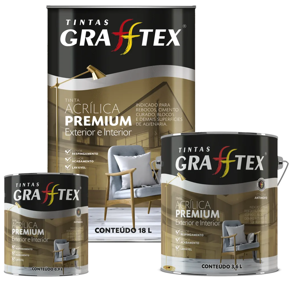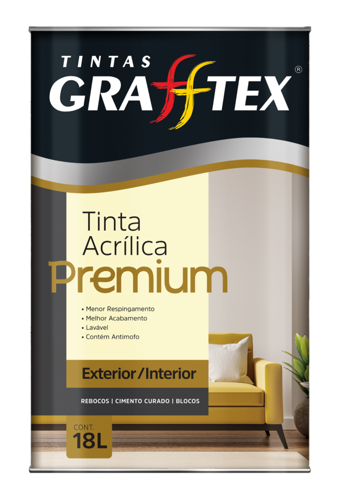 GRAFFTEX ACRÍLICA PREMIUM FOSCA é uma tinta acrílica de alta qualidade desenvolvida para a preservação e embelezamento de fachadas e paredes. É um produto de fácil aplicação, baixo respingo, excelente nivelamento e cobertura, e também oferece proteção contra mofo.