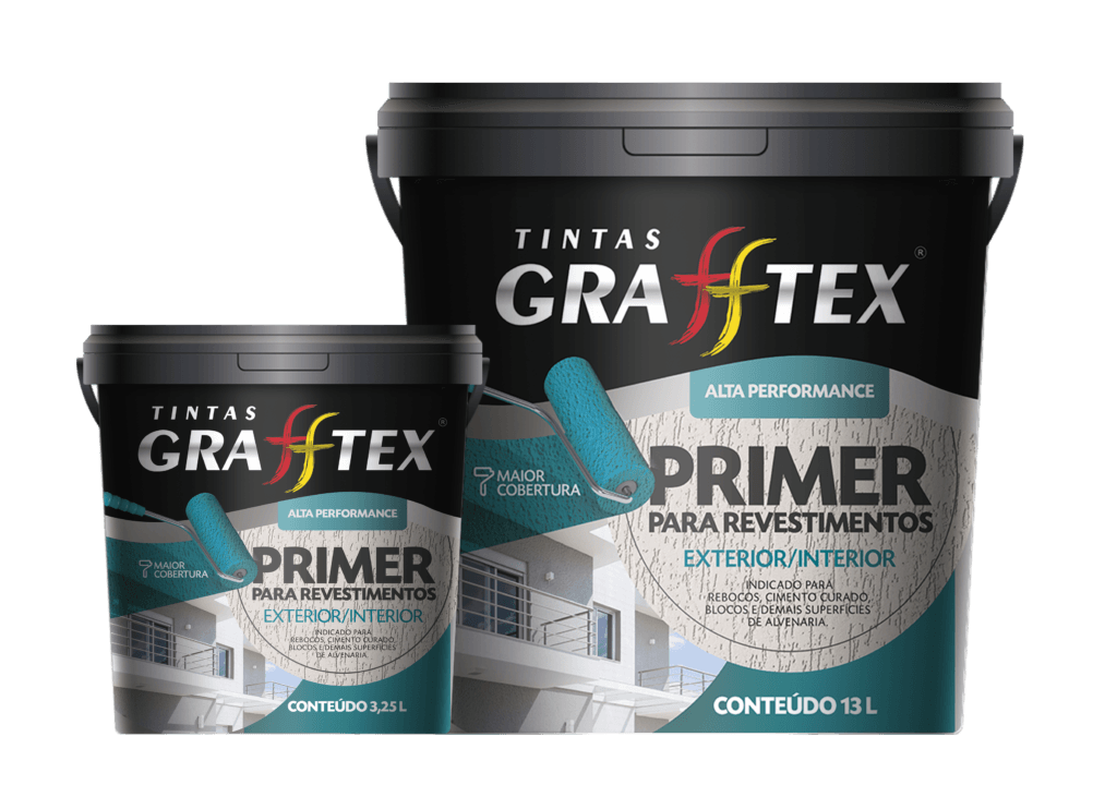GRAFFTEX COMPLEMENTO PRIMER é um fundo acrílico a base de água, que possui secagem rápida, grande poder de enchimento e cobertura, desenvolvido especialmente para ser usado como fundo em revestimentos que requerem uma cobertura prévia na mesma cor.