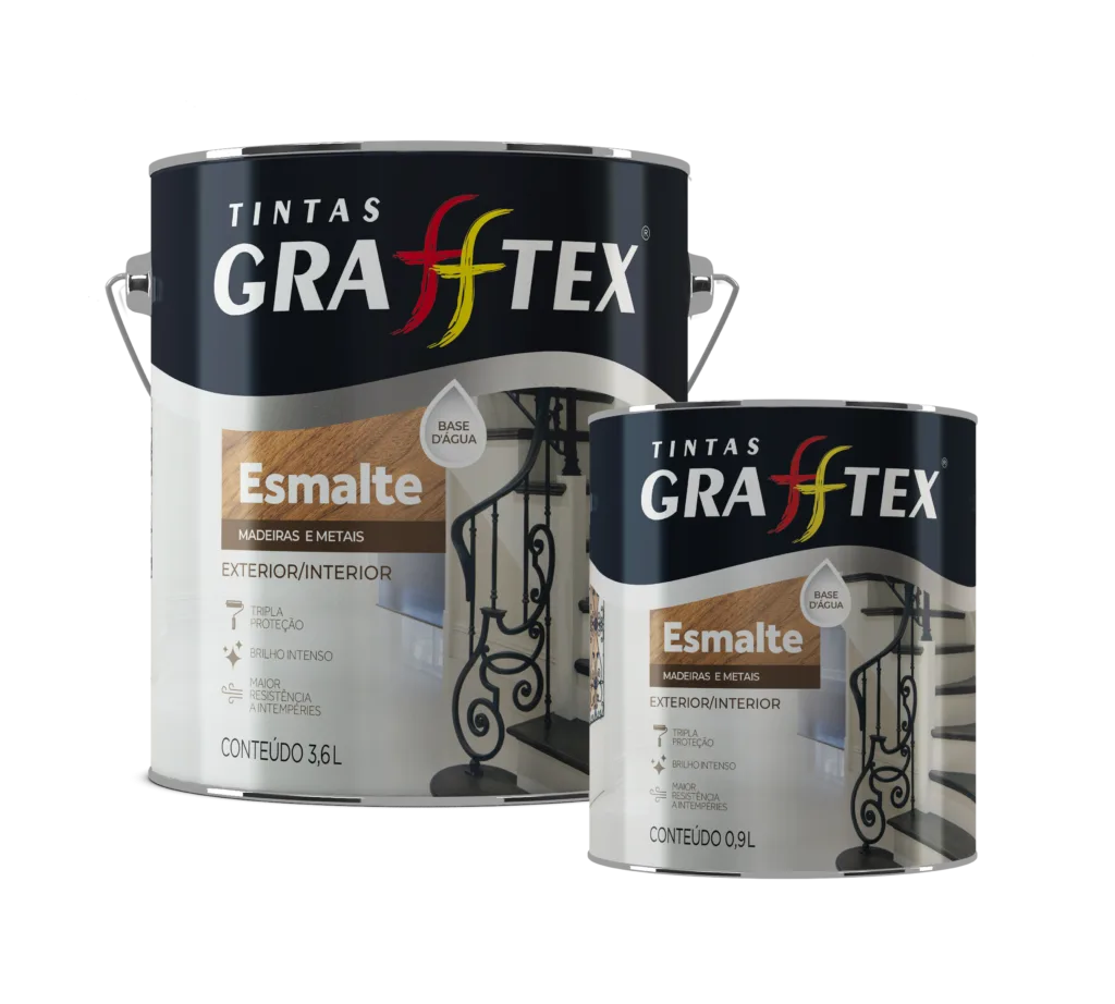 GRAFFTEX ESMALTE ECOLOGICO ALTO BRILHO é um esmalte base agua que promove mais saúde e segurança para você e ao meio ambiente. Produto formulado com resinas acrílicas especiais com refinado acabamento para aplicação em superfícies internas e externas de madeiras, alvenarias, metais ferrosos, galvanizados, alumínio etc.